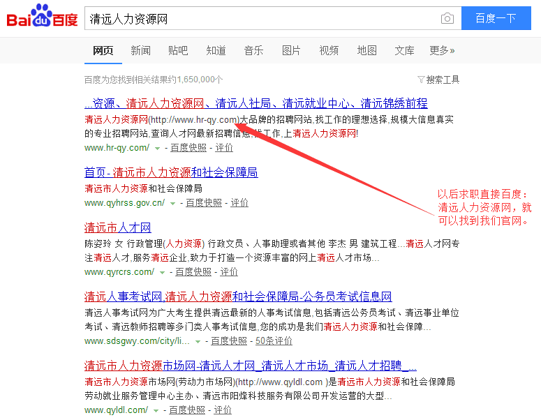 恭喜“清遠(yuǎn)人力資源網(wǎng)”m.sxzhd.com榮登百度搜索清遠(yuǎn)地 區(qū)首位。清遠(yuǎn)人力資源網(wǎng)是由清遠(yuǎn)市人力資源市場指導(dǎo)、清遠(yuǎn)市錦繡 前程人力資源有限公司運(yùn)營的官方求職招聘平臺。從3月份正式推 廣到現(xiàn)在,本網(wǎng)站已經(jīng)吸引了眾多企業(yè)與求職者注冊。